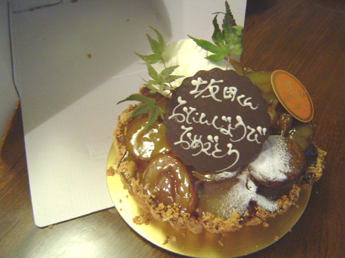 予約したパイは本来普通のケーキなんですけど、おっきな4号サイズも作ってもらえるってんで、そっちをお願いしたんですよね。4号だからデコレーションケーキ扱いで、予約の時に「プレートはいかがいたしましょう?」って聞かれちゃったんですよね。