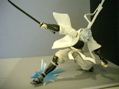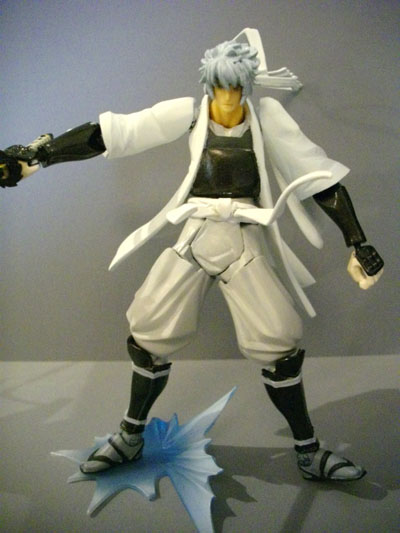 刀構える白夜叉銀さん。上段、正眼、片手で薙ぎ払うポーズも自由自在。フェイスパーツは通常の真面目顔にだらけ顔、それから覚醒時のぶちギレ顔も付属します。欲しい!欲しい!欲しい!