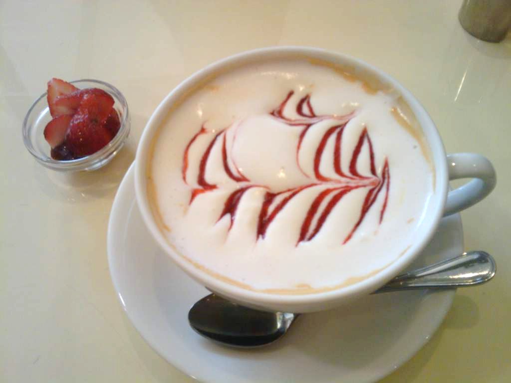 カフェオレボールになみなみの「いちご練乳ロイヤルミルクティー」!!添えられたいちごを中でつぶしながらいただきますv