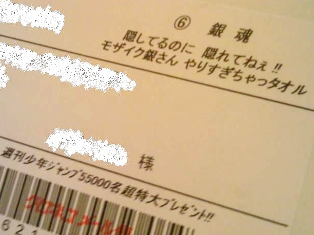 や、年賀ハガキあまってたし、タオルだったらもらっても使えるし…。「少年ジャンプの読者プレゼントに応募する」という行為そのものが既に落ち着きないんですけどまぁそれはそれ。