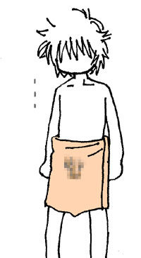 ジャンプでご覧になった方もあるかと思いますが、しかもこのタオル、腰に巻くとちょうど股間のその場所にモザイクが印刷されておりまして。