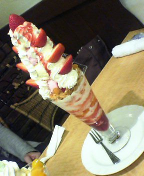 お出かけ先で垂直方向に大変チャレンジしているパフェ発見。