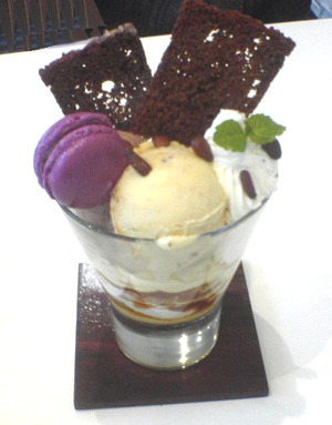 中にはアイスにプリンにバナナ。例のコーンフレークには、キャラメルをからめるというひと仕事がしてあって、これならアリだと思いました。量もほどほどだったしね。